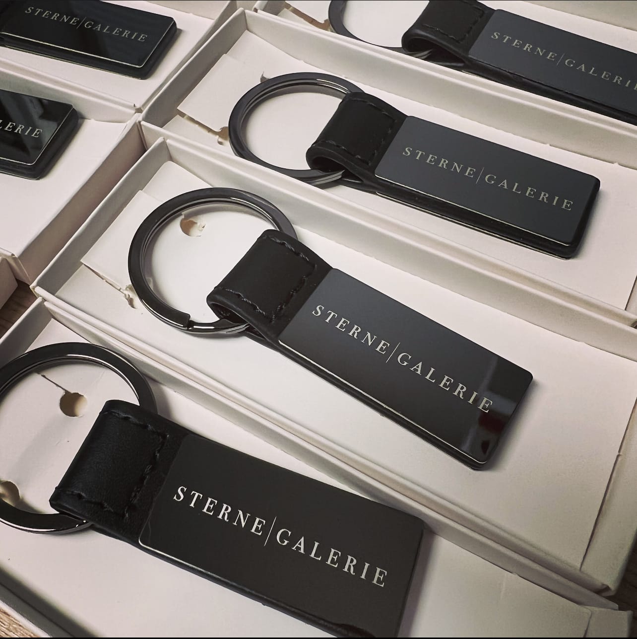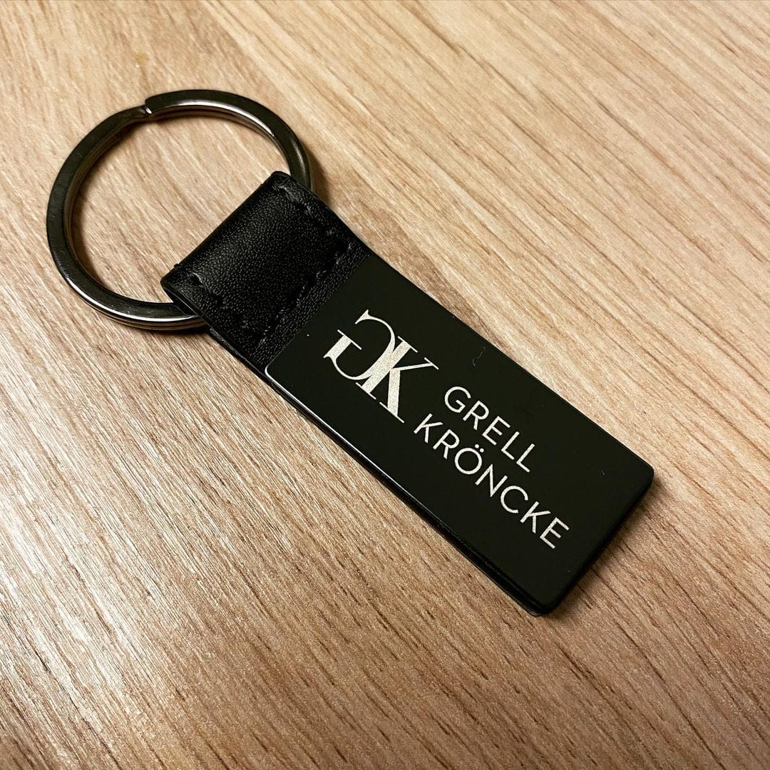Diesen Schlüsselanhänger kannst du mit deinem Symbol, Logo und Text individuell gestalten.