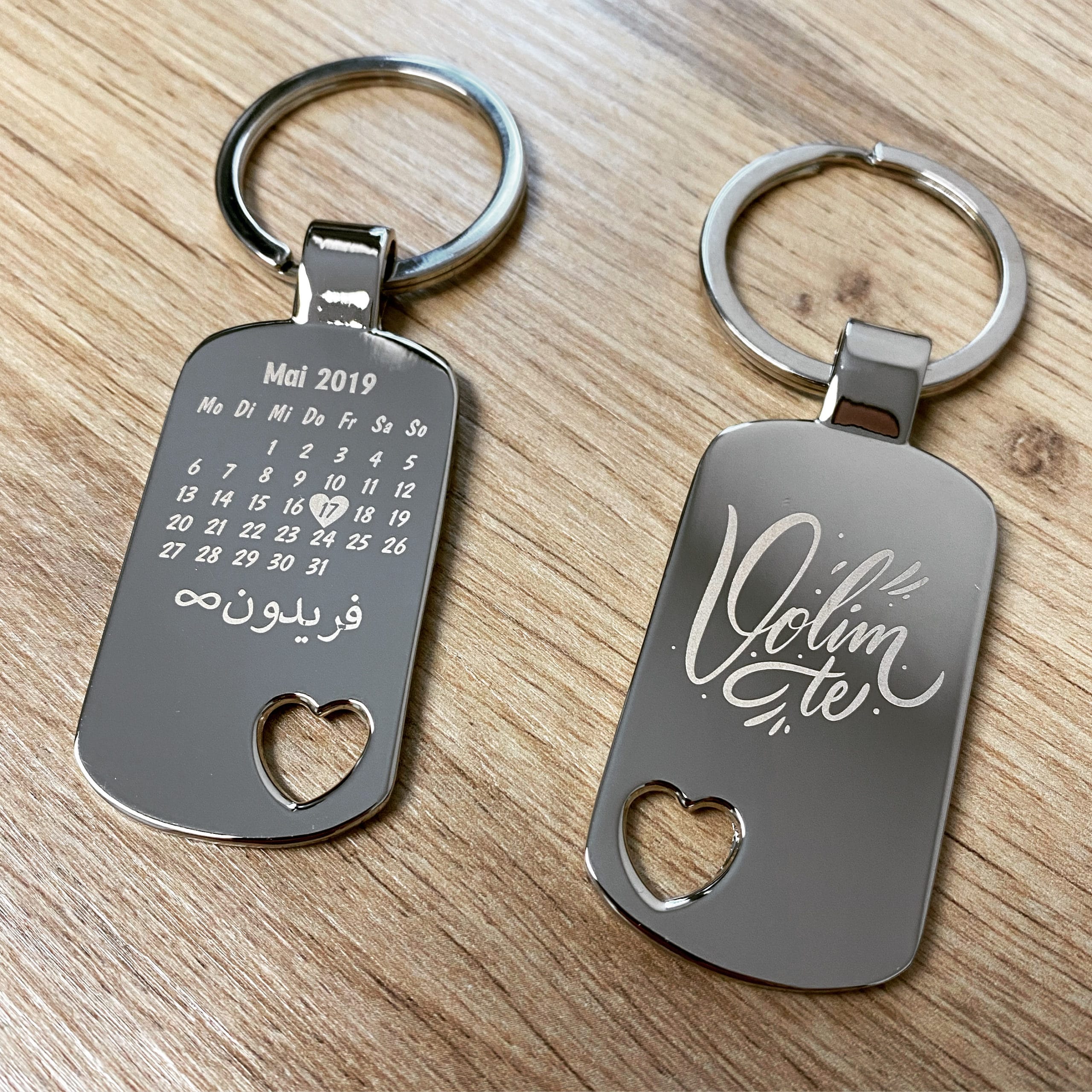 Genau wie die Liebe zum Leben gehört, so gehört Deine bessere Hälfte zu Dir! Partner-Schlüsselanhänger sind eine tolle Art und Weise, wie ihr immer miteinander verbunden sein könnt. Ob für Frauen oder für Männer, so drückst Du Deine Gefühle mit einem schönen Präsent aus, über das sich Dein Schatz garantiert freuen wird. Ein Geburtstagsgeschenk, Hochzeitsgeschenk oder Jahrestagsgeschenk wird mit einer individuellen Gravur um einiges persönlicher. Ob zum Jubiläumstag, zur Geburt oder der Taufe eures Babys: unsere gravierten Anhänger sind immer ein Unikat und werden genau nach Deinen Vorstellungen angefertigt. Ein eingravierter Mini-Kalender mit eurem Jahres- oder Kennenlerntag, eurem Hochzeitsdatum oder dem Geburtsdatum eures Kindes ist eine tolle Idee.