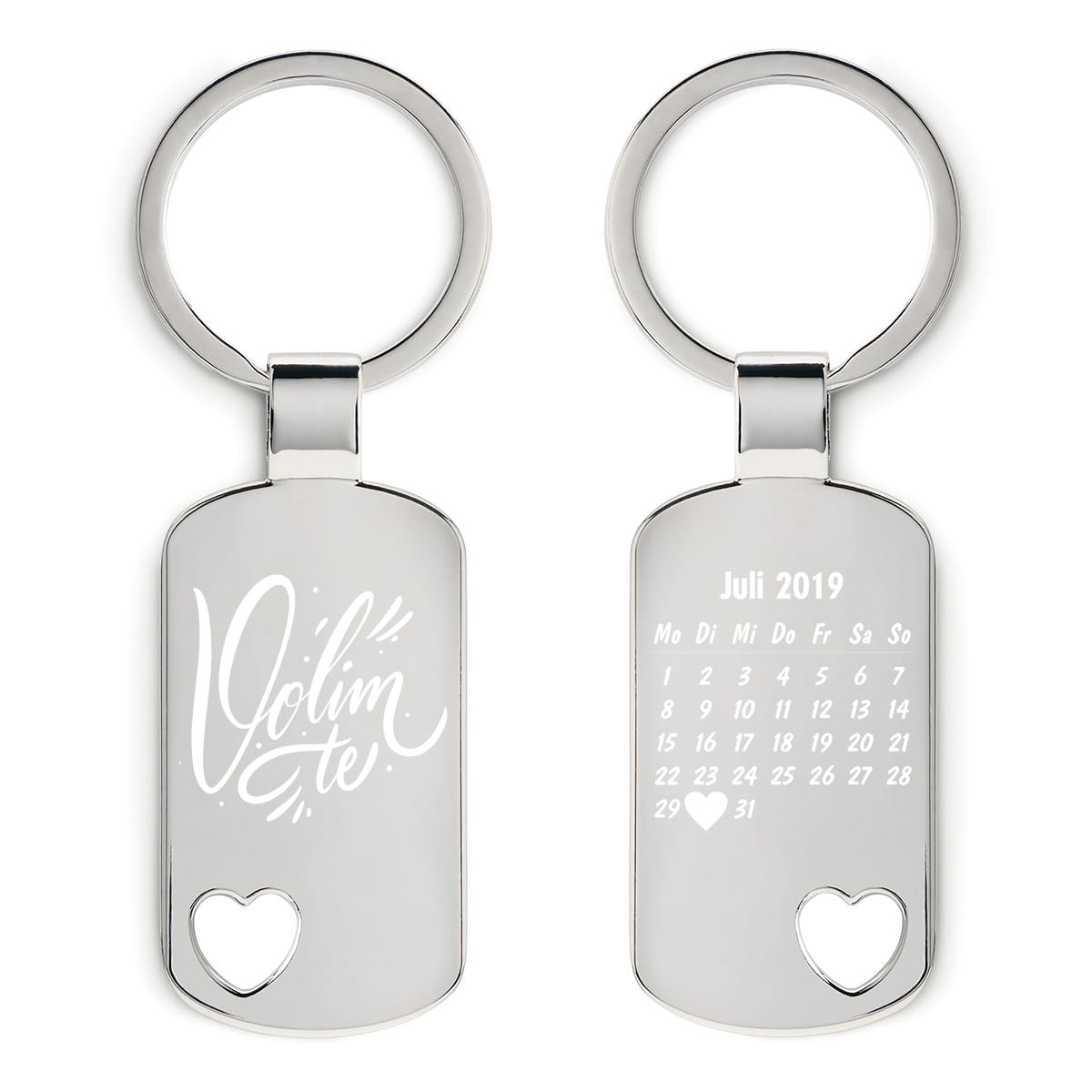 Beidseitig graviert. Eine Seite mit “Volim te” und die andere Seite mit einem Kalender inkl. deinem Wunschdatum.